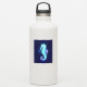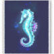 Espumantes, cristais, gelados, poligonais, cavalo marinho sobre fundo azul escuro.