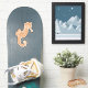Laranja, praia, mar, peixe, linocuto, cavalo marinho, vida marinha