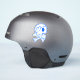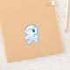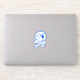 Um decal de vinilo com um crânio azul e uma ilustração óssea cruzada com um adesivo em forma de coração.