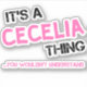 É uma coisa de Cecilia que você não entenderia em letras estêncil angustiadas com nome em pinceladas rosa brilhante.