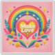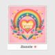 Uma mostra viva de cores vibrantes e de filmes alegres apresenta um coração no centro, cercado por um arco-íris arrojado e flores delicadas.