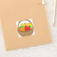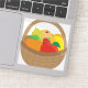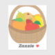 Uma arte vetorial de uma cesta cheia de frutas. As frutas consistem em laranja, pêssego, pera, uvas, manga, banana, morango e maçã.