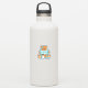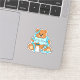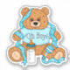 Urso de animação azul e amarelo desenhado com a mão com chá de fraldas de frasco ou novo adesivo para bebê.