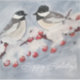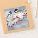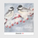 Impressão de arte de dois pássaros sentados em um galho de árvore com bagas e neve.