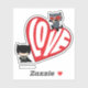 Confira Chibi Catwomen tocando Chibi Batman neste gráfico adorável, apresentando um coração vermelho gigante com a palavra "Amor".