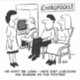 Cartoon da bolsa. Um Chiropodista está checando suas ações online no site. Sua recepcionista está informando vários pacientes que não demorará muito. Cartoon popular engraçado onde um pedicuro está checando a bolsa de valores online.