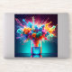 The image depicts a vibrant explosion of color erupting from a laboratory beaker. Clouds of pink, orange, blue, and green ink billow upwards, capturing the energy of a chemical reaction frozen in time. The beaker, filled with a glowing blue liquid, sits on a reflective surface, hinting at the transformative power contained within. The dark background and strategic lighting further emphasize the brilliance of the colors, creating a sense of wonder and excitement.
