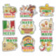 Cinco de Mayo; Cinco de Mayo é uma celebração do patrimônio mexicano. Comemora a data da vitória do exército mexicano sobre a França na Batalha de Puebla, em 1862. Os adesivos são cortados na forma exata da sua imagem e produzidos através de um processo de corte personalizado (corte por beijos) em folhas de vinilo