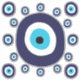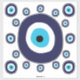 Etiqueta-padrão de símbolos tradicionais de círculo marinho azul-mau, turquesa e branco de proteção