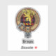Crachá da crista Clan Brown rodeado por uma correia e fivela sobre fundo tartano. Custom Text.