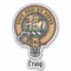 Crachá da crista Clan Craig rodeado por uma correia e fivela sobre fundo tartano. Texto personalizado.