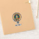 Crachá da crista de clã MacIntyre rodeado por uma correia e fivela sobre fundo de tartã de caça. Texto personalizado.