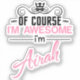 Claro que sou incrível, sou a Airah, com uma mistura de sans preto e rosa e uma letra cursiva com bordos brancos de rolagem e com uma coroa.