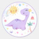 Adesivo redondo clássico de Festa de aniversário do dinossauro púrpura
