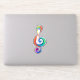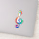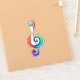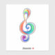 Chave musical desenhada a partir de camadas multicoloridas de cores do arco-íris sobre fundo branco.