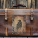 Raven no fundo do azulejo de pedra. Engrenagens de relógio por toda a fronteira.