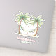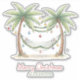 This fun coastal holiday inspired Christmas party vinyl sticker features palm trees decorated with ornaments and a hammock. Personalize with your choice of special text. Great for personalized holiday party decorations and party favor treat bags.