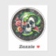 Atraente adesivo com tons verdes de um cobra com um crânio rodeado de flores.