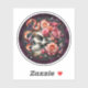 Atraente adesivo de cor clara de um cobra com crânio rodeado de flores.