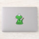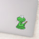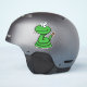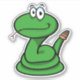 Cobra de desenho animado verde e divertida. Ele tem olhos ovais com sobrancelhas levantadas, um chocalho na ponta do rabo e a língua para fora de um sorriso malicioso.
