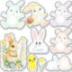 Coelhinhos de Páscoa engraçados e sortudos, pintinho e ovo de Páscoa. Os coelhos simbolizam abundância, longevidade e boa sorte!