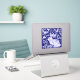 Um sotaque agradável para o seu decor azul e branco. O design apresenta um coelho e aves bonitos num cenário de floresta estilizado com flores, folhas, bagas e vinhas. Eu amoleci as bordas de design para uma aparência única. Minha trabalho de arte foi inspirada pelos antigos motifs Delft, Dedham e orientais chinoiserie porcelain. Excelente para quem ama animais, natureza, coelhos ou azul e branco! Arte e design originais peculiares, únicas, de Tuzi Williams.