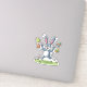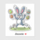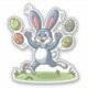 Salto em festividades de Páscoa com nosso adorável adesivo de coelho da Páscoa apresentando um belo coelho fazendo malabarismo com ovos coloridos de Páscoa com finesse e talento.