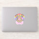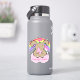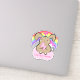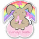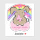 Um adesivo de contorno de um coelho coelho coelho muito bonito, castanho claro, estilo Kawaii, com borboletas rosa, em frente a um belo arco-íris. Você pode personalizá-lo com seu nome.