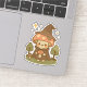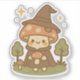 Um cogumelo mágico vestindo um chapéu de bruxa e um manto, entre pequenas plantas de floresta brilhantes com faíscas. Fantasia da floresta cozinha!
