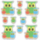 3 corujas bonitinhas juntas. e solteiros, vermelhas, verdes e azuis.