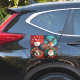 Uma colagem alegre de ícones de férias com um ursinho de pelúcia, Papai Noel, e dois pinguins vestindo lenços vermelhos, cada um enquadrado em bordas circulares congeladas com flocos de neve. Ideal para cartões de Natal, calendários e etiquetas de presentes.