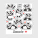Adicione um pacote de 8 diferentes pandas bonitinhas à sua coleção de adesivos, com pequenos corações vermelhos no meio.