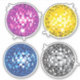 Um conjunto de quatro adesivos de bola de disco incluindo uma bola de prata, rosa e uma bola de disco azul. Perfeito para uma festa temática dos anos 70 ou solteira de discoteca.