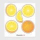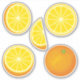 Ícone laranja cola adesivos. Uma fatias laranja e cortada.