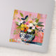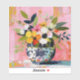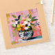 Colorful and vibrant floral bouquet painting in a pretty blue and white vase.