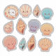 Vibrant illustrations of shells, crabs, and sea life arranged as playful stickers. Perfect for kids’ crafts, scrapbooking, classroom decor, and ocean-themed projects.