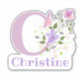 Personalize qualquer item com um adesivo de Nome e Inicial com Corte de Design Floral. O nome do exemplo é Christine.