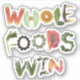 Mostre o seu amor por comidas inteiras com esta citação fonética de comida que diz "Win Inteiro da Comida" com melancia, melancia, laranja, alface, berinjela, funcho, azeitona, okra, fruta de dragão, espinafre, grama de trigo, salsa italiana e nectarina.