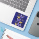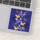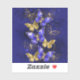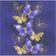 Composição de borboletas luxuosas de safira e joias de ouro em fundo azul texturizado.