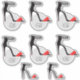 Este é um conjunto de 6 adesivos personalizados com suas iniciais, nome ou monograma. Cada uma delas é um desenho de uma sandália de salto alto e estileta com um calcanhar preto, uma ponta vermelha ao calcanhar, uma precinta de tornozelos pretos apertada com uma fivela de fecho e uma precinta vermelha através dos dedos. Também estão incluídos dois adesivos da sandália, sem monograma. Você pode usá-los para personalizar notebooks, laptop, capa de telefone etc.