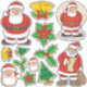 O adesivo de Natal e Ano Novo com o Santas e ícones de celebração. Saco de Natal, sinos, árvore de natal e poinsettia.