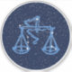 Vinheta com o símbolo Libra em azul-prata suave, sobreposta com as estrelas da constelação, sobre um fundo de céu estrelado formando de azul-da-meia-noite a preto