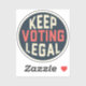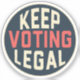 Um autocolante redondo de mensagens em uma vintage estilo americano com "KEEP VOTING LEGAL" em vermelho patriótico, creme e marinho. Um lembrete poderoso de proteger a democracia antes das eleições de 2028. Ideal para ativistas de direitos de voto, grupos cívicos, salas de aula ou apoiadores de campanha mostrando compromisso com eleições justas.a