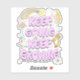 Design de texto motivacional "Continue crescendo" com cogumelo, flores, estrelas, arco-íris, nuvens e decoração solar