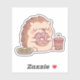 Um ouriço giro está alegremente se movendo em uma rosquinha rosa glacé. Há um prato de biscoitos e uma xícara de chá de boba do lado dele! Arroz adorável para ouriços e amantes de lanches! ótimo