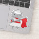 Você gosta de gatos? Você gosta de adesivos bonitos? Este adesivo tem um gatinho cinza vestindo um uniforme de guarda vermelho e branco com uma bandeira vermelha.