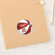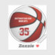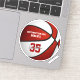 Este adesivo de basquete personalizado apresenta a imagem realista de uma bola de basquete que tem painéis coloridos vermelhos e brancos alternados nos quais você pode personalizar o nome do atleta e o número de camisa mais o nome da escola ou do clube e o nome do mascote - por katz_d_zynes
