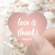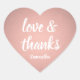 Adicione um toque elegante personalizado de finalização para agradecer notas, favoritos para festas e decorações com caligrafia em forma de coração / selos de envelope. Design apresenta bonito cor-de-rosa cor-de-rosa fina folha metálica falsa, na moda script typografia amor e obrigados, e um nome. Todo texto nesses rótulos versáteis é simples de personalizar e pode ser usado em qualquer ocasião, como chá de panela, chá de fraldas, aniversário, graduação etc.