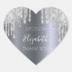 Uma tendência e festa de aniversário glamourosa. Um metal prateado falso, com aspecto de folha de fundo decorado com pingos falso de brilho prateado, aparência de pingar tinta. Personalize e adicione uma data e um nome. O nome é escrito com um moderno estilo escrito à mão. Perfeito para favores e cartas de agradecimento.
