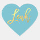 Adesivo Coração BAT MITZVAH turquoise gold nome do script LEAH